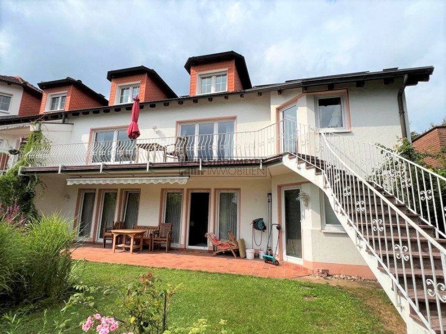 Besonders schön ist der Zugang auf den Sonnenbalkon mit herrlicher Fernsicht und Blick in den Garten. Es gibt sogar eine massive Treppe, die direkt in den Garten führt.